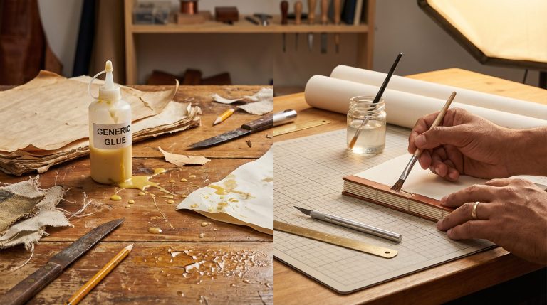 A escolha da cola errada é a causa número um de falhas estruturais em projetos de artesanato. Para trabalhos em papel (scrapbooking, cartonagem), a cola branca à base de PVA (Acetato de Polivinila) é a mais indicada, preferencialmente as versões livres de ácido para evitar o amarelamento com o tempo. Já para fixar metais, plásticos ou vidros, colas de contato ou adesivos epóxi são necessários, pois criam uma ligação química mais forte que não depende da porosidade do material.