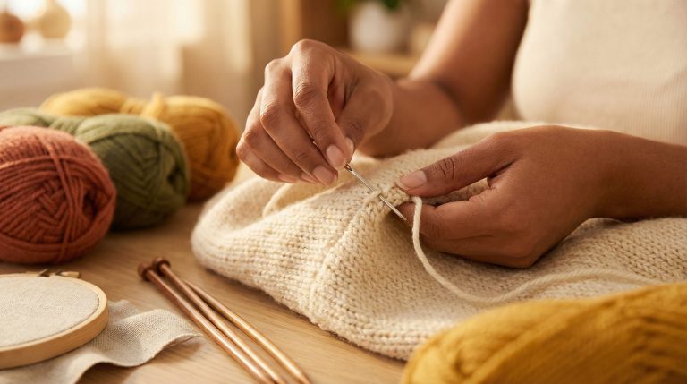 O avesso de um trabalho diz tanto sobre a qualidade quanto o direito. Emendas de fios no meio do trabalho devem ser feitas de forma segura e invisível (o “nó de tecelão” ou a união feltrada são ótimas opções para lãs). Ao finalizar, esconder as pontas por dentro da trama com uma agulha de tapeçaria garante que a peça não desmanche na primeira lavagem. Bordas bem feitas, como pontos “caranguejo” no crochê ou barras italianas no tricô, elevam a percepção de valor da peça artesanal.