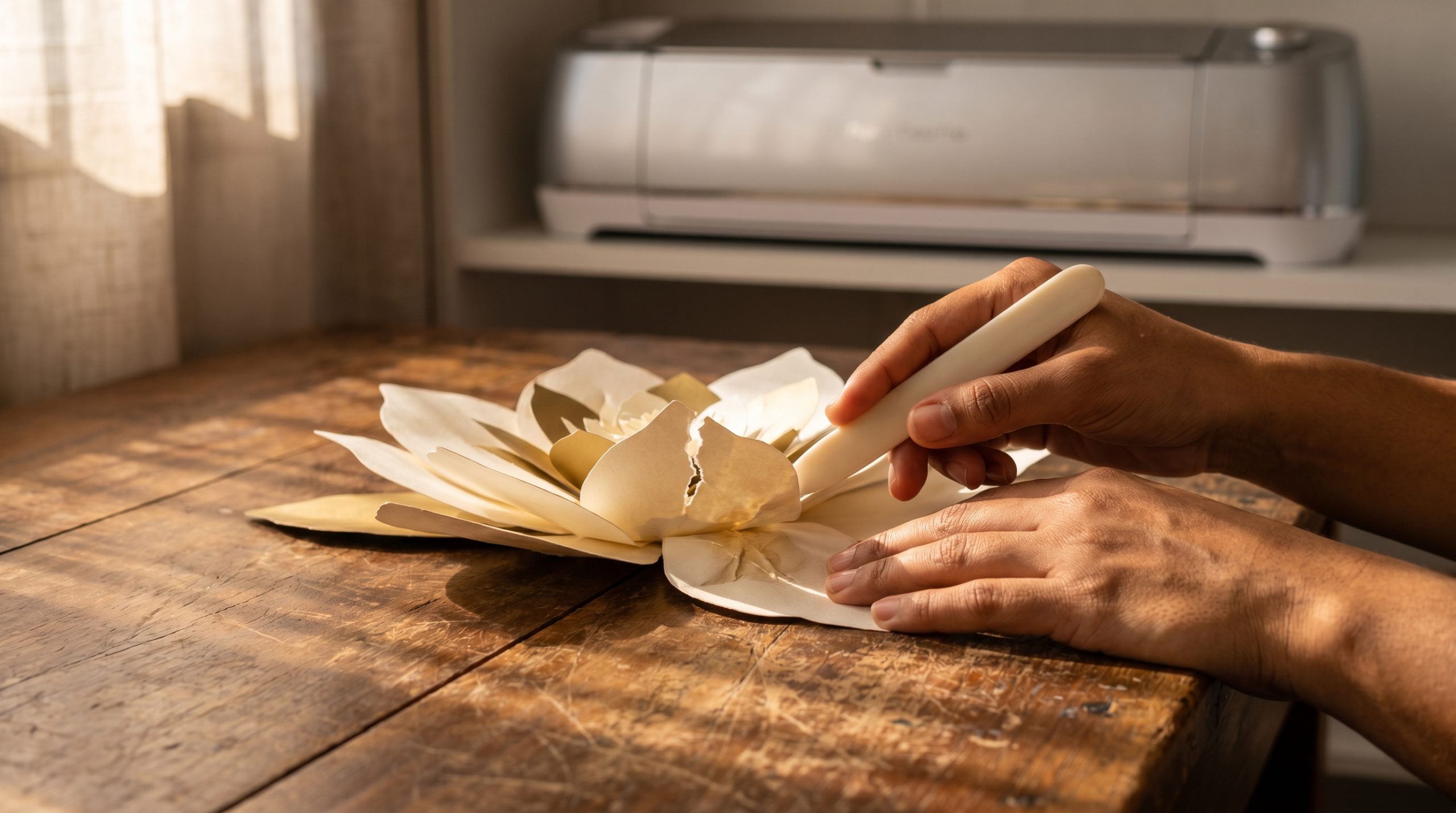 Imagine investir milhares de reais em uma máquina de corte eletrônica de última geração, com o sonho de criar topos de bolo impecáveis, convites de luxo e caixas personalizadas perfeitas. Você escolhe o molde, aperta o botão de corte e, quando vai montar a peça, o papel rasga, a dobra fica torta e a cola enruga todo o trabalho final. O resultado? Uma peça que parece totalmente amadora. Esse cenário é mais comum do que se imagina, e o motivo é simples: máquinas são excelentes aceleradoras de produção, mas nunca vão compensar a falta de técnica manual.